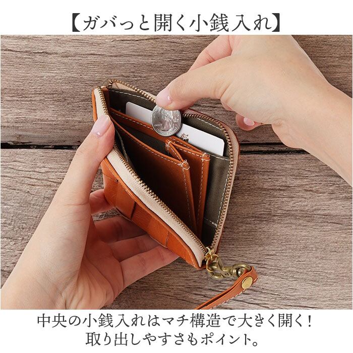 ・中央の小銭入れはマチ構造で大きく開く!取り出しやすさもポイント。