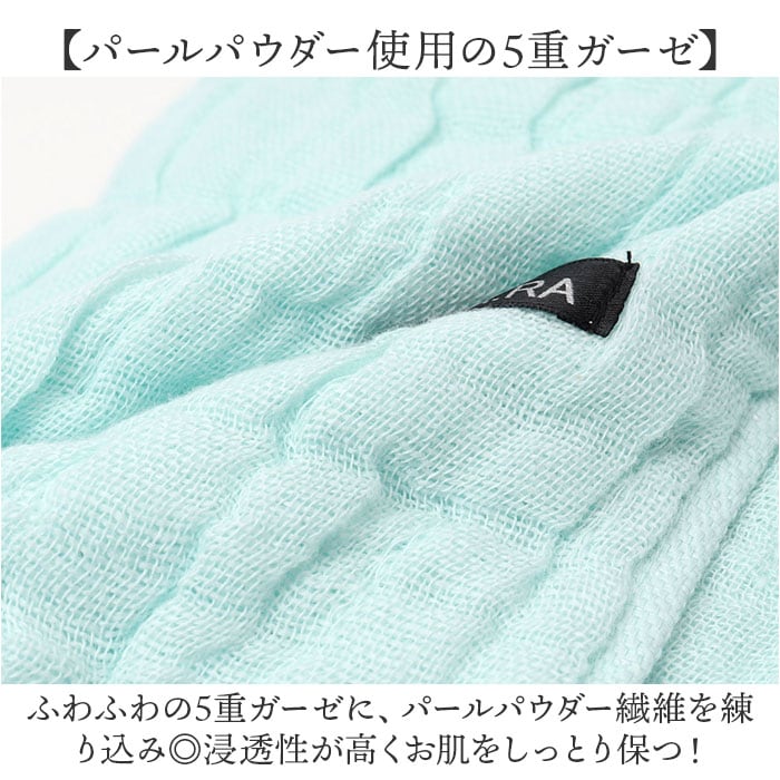・ふわふわの5重ガーゼに、パールパウダー繊維を練り込み◎浸透性が高くお肌をしっとり保つ!