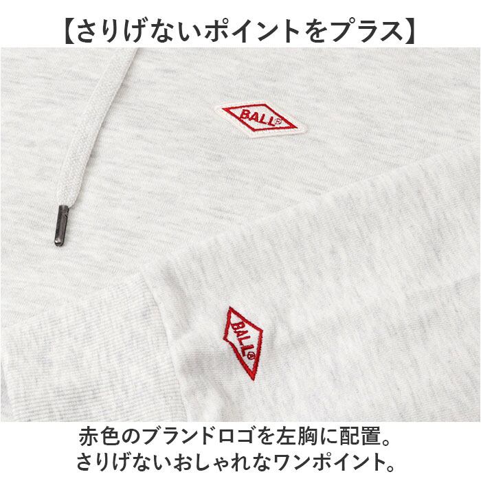 ・赤色のブランドロゴを左胸に配置。さりげないおしゃれなワンポイント。