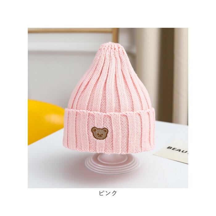 ・フロントに配置された、クマさんの刺繍がワンポイント!ちょこんと被る姿にほっこり♪