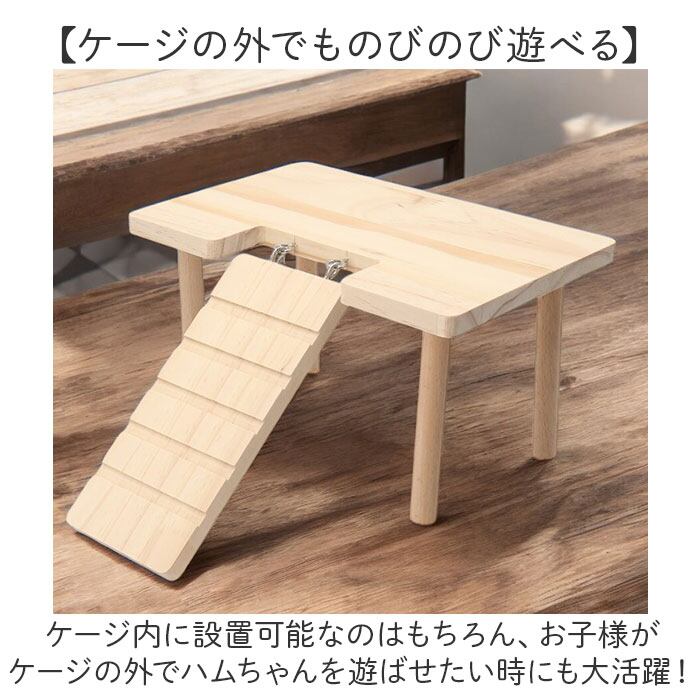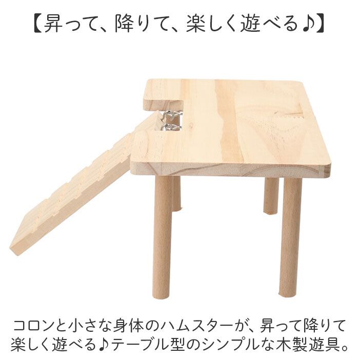 ・コロンと小さな身体のハムスターが、昇って降りて楽しく遊べる♪テーブル型のシンプルな木製遊具。