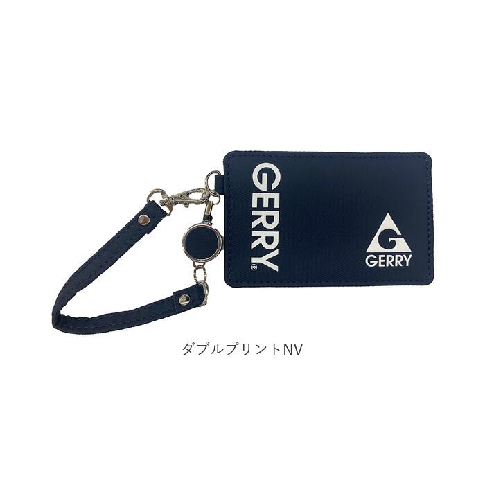 ・モノトーンの生地に縦にプリントされたGERRYのロゴと立体的なエンボスロゴが映えるデザイン。