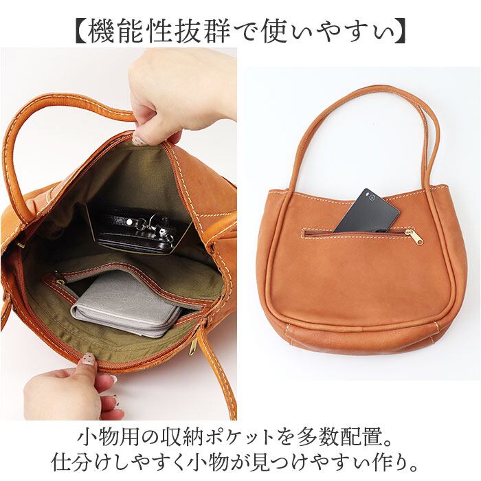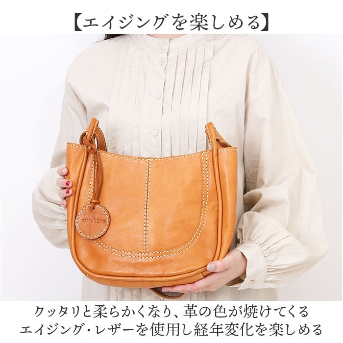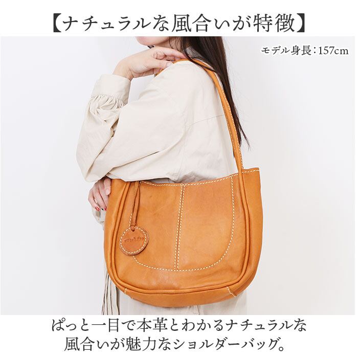 ・ぱっと一目で本革とわかるナチュラルな風合いが魅力なショルダーバッグ。
