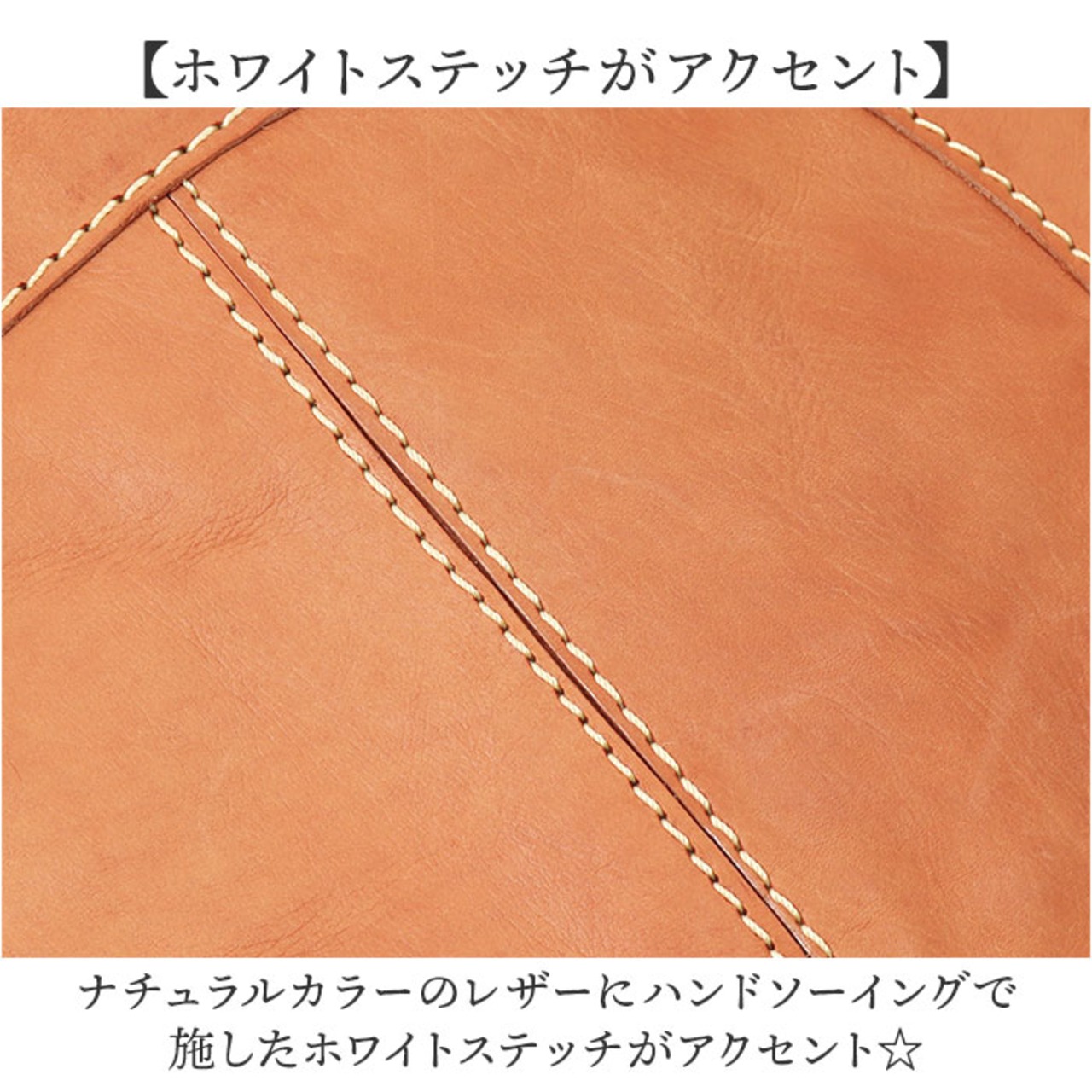・ナチュラルカラーのレザーにハンドソーイングで施したホワイトステッチがアクセント☆