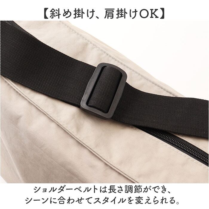 ・ショルダーベルトは長さ調節ができ、シーンに合わせてスタイルを変えられる。
