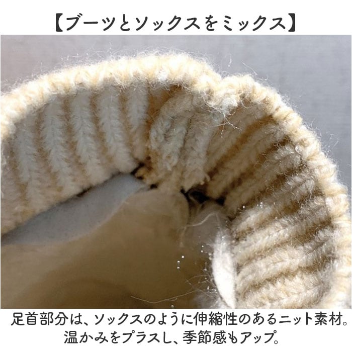 ・足首部分は、ソックスのように伸縮性のあるニット素材。温かみをプラスし、季節感もアップ。