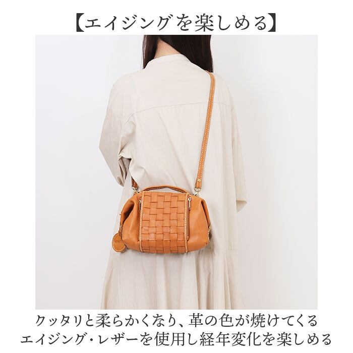 ・クッタリと柔らかくなり、革の色が焼けてくるエイジング・レザーを使用し経年変化を楽しめる