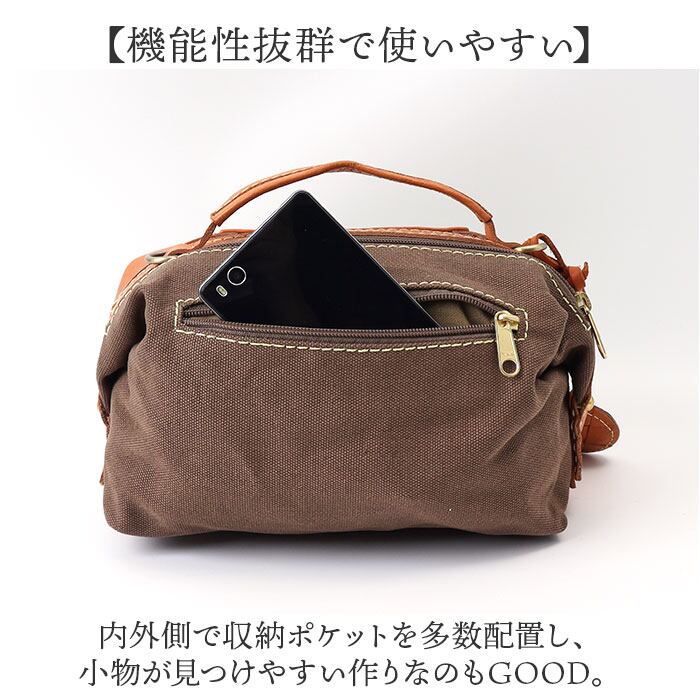 ・本革パーツと、ナチュラルなキャンバス生地とのコンビネーションがアクセントに。