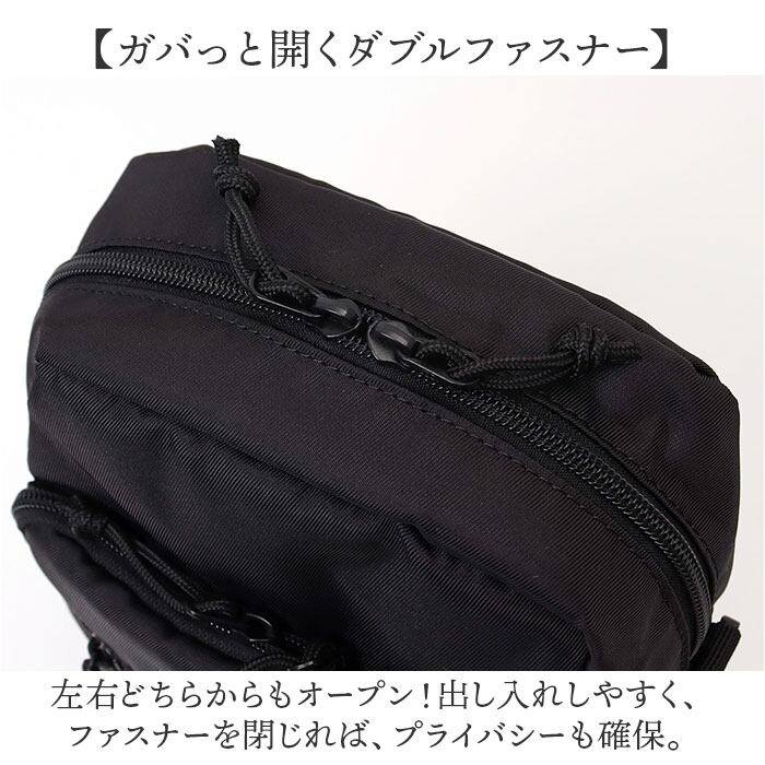 ・左右どちらからもオープン!出し入れしやすく、ファスナーを閉じれば、プライバシーも確保。