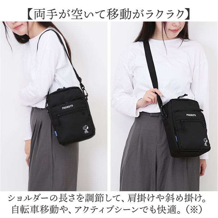 ・ショルダーの長さを調節して、肩掛けや斜め掛け。自転車移動や、アクティブシーンでも快適。