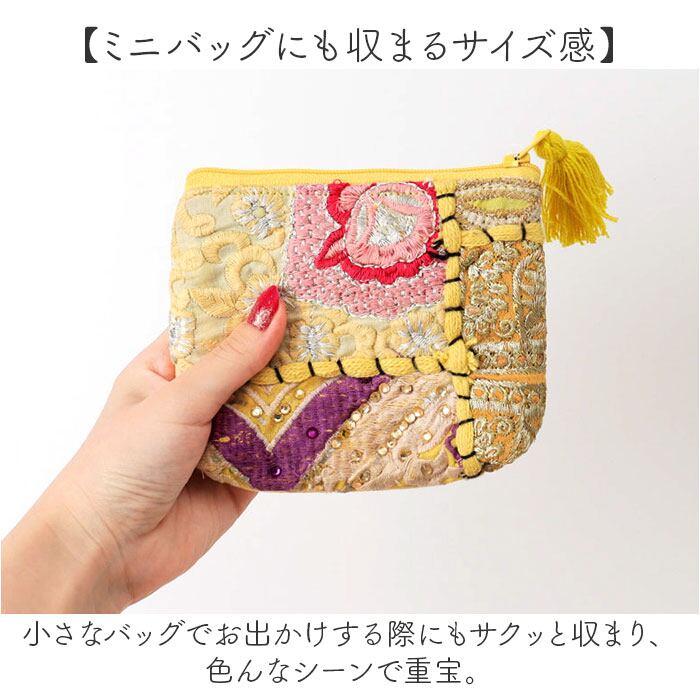 ・インド伝統☆魅惑のパッチワーク。「カンバディアパッチ ティッシュケース付ポーチ」。