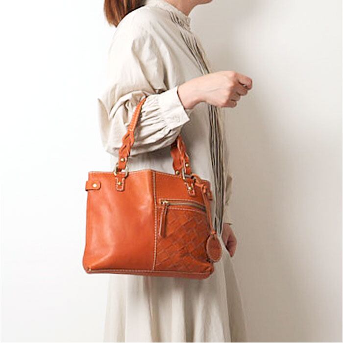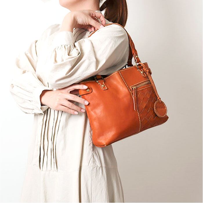 ・ぱっと一目で本革とわかるナチュラルな風合いが魅力なハンドバッグ。