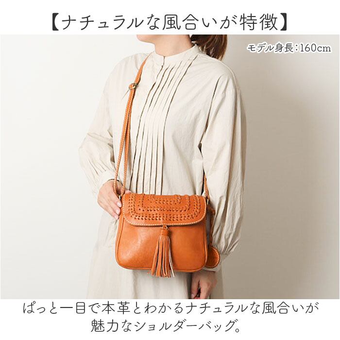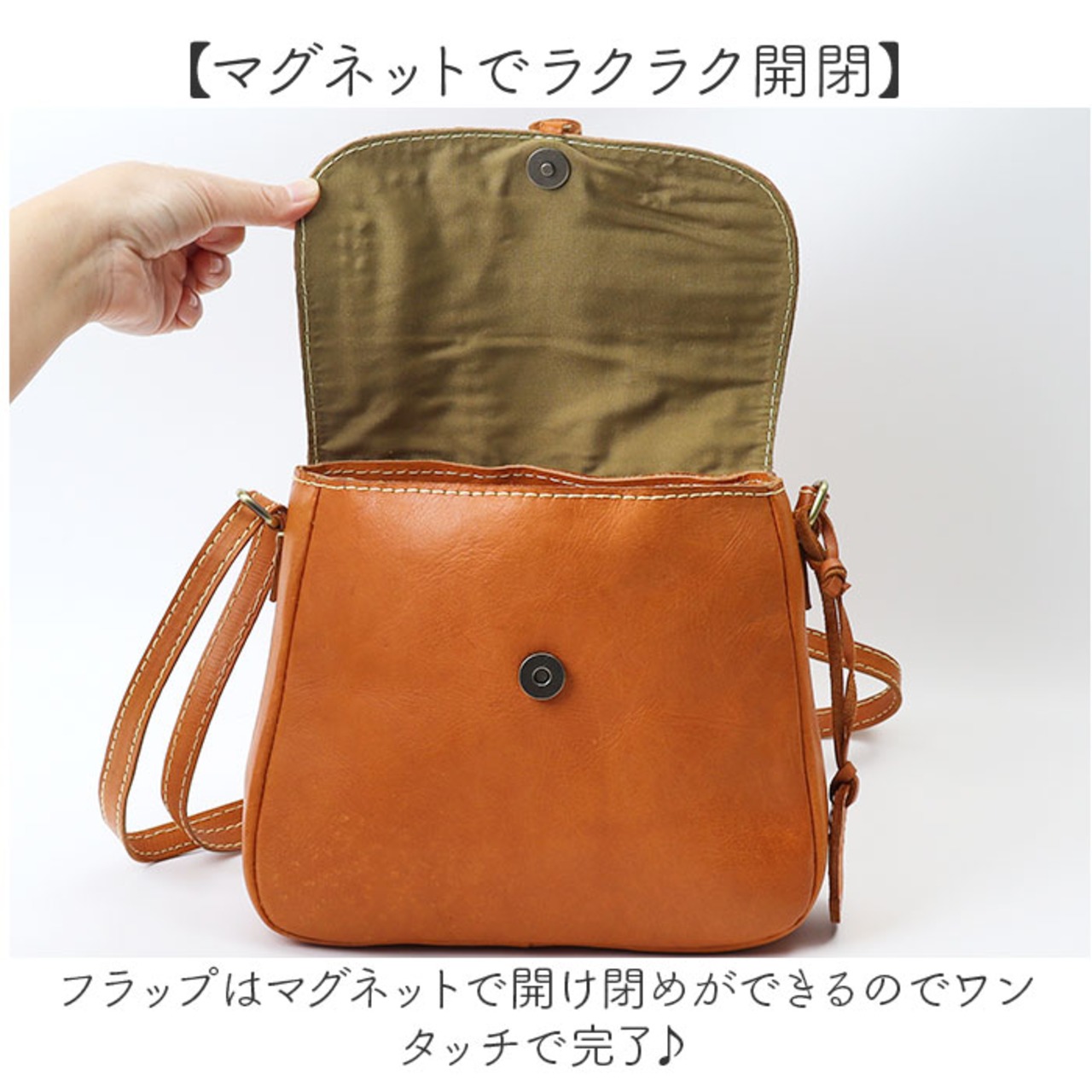 ・ぱっと一目で本革とわかるナチュラルな風合いが魅力なショルダーバッグ。