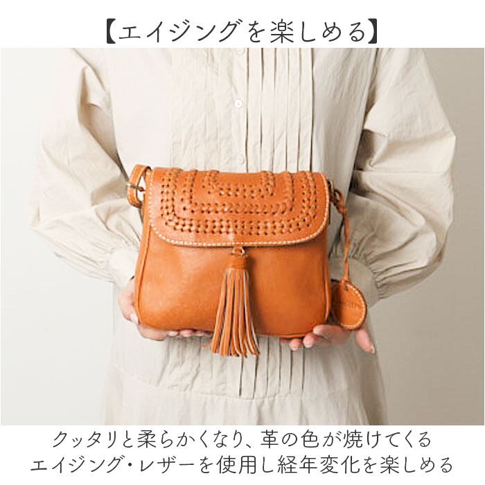 ・クッタリと柔らかくなり、革の色が焼けてくるエイジング・レザーを使用し経年変化を楽しめる
