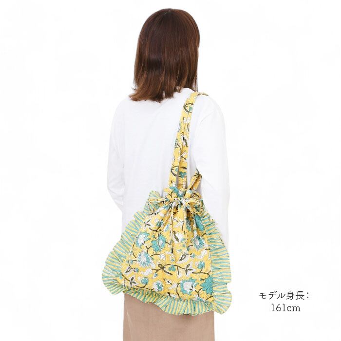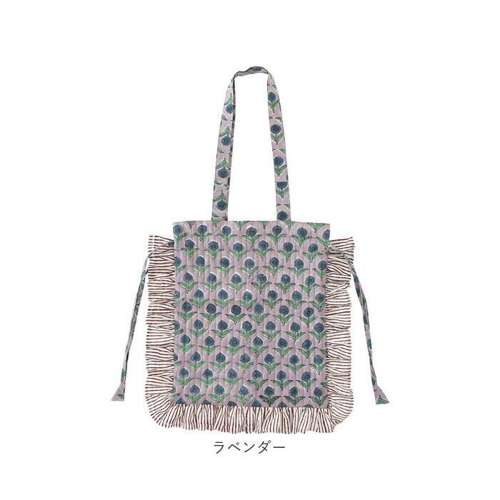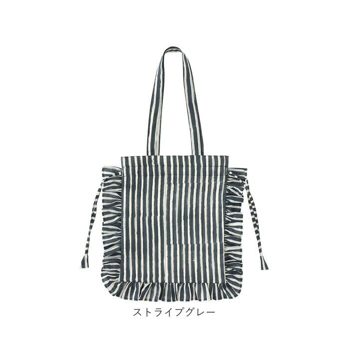 トートバッグ フリル 通販 トートバック トート 手提げ 肩掛けバッグ 肩掛けバック 肩掛け エコバッグ エコバック サブバッグ サブバック 巾着バッグ 巾着バック 巾着 ブロックプリント 柄 かわいい 可愛い デザイン おしゃれ オシャレ