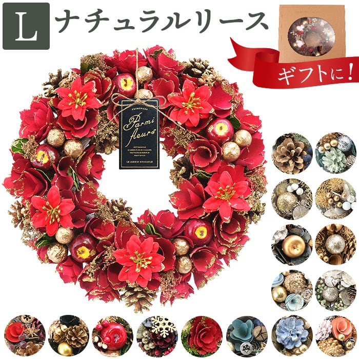 ・存在感抜群のLサイズ。広いリビングや玄関、ドアなどもおしゃれに演出するナチュラルリース。