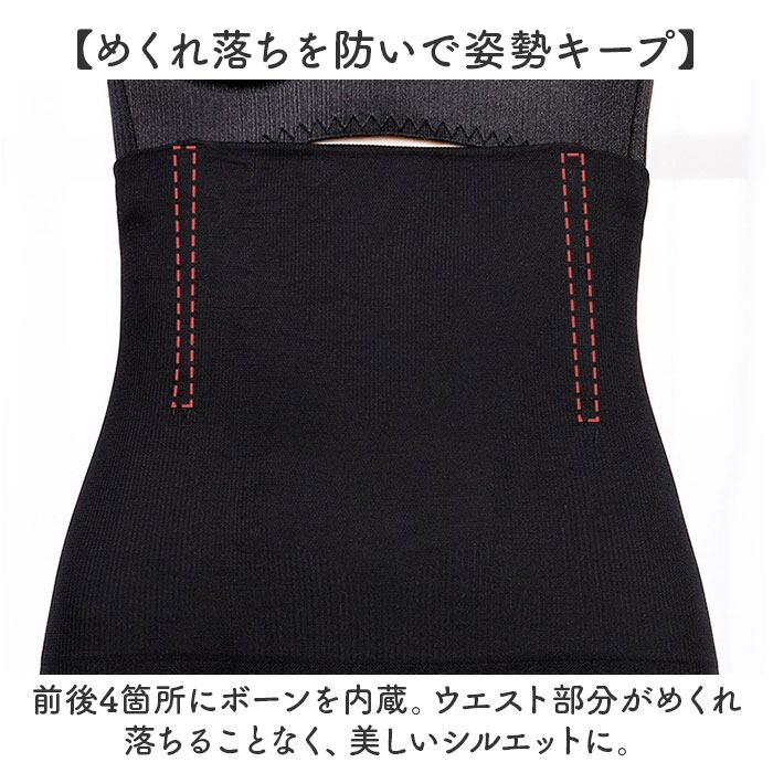 ・前後4箇所にボーンを内蔵。ウエスト部分がめくれ落ちることなく、美しいシルエットに。