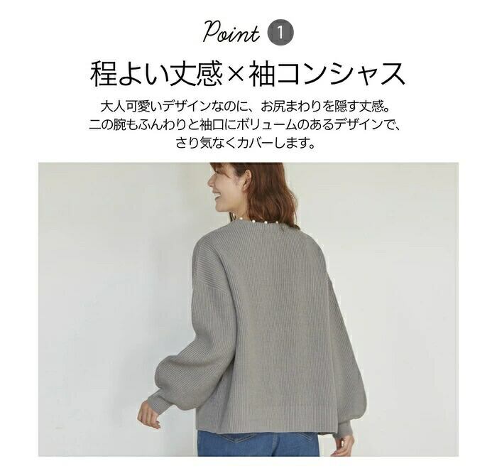 ・フロントのパール調デザインとふんわりボリューム袖で女性らしい着こなしも甘辛ミックスもお手のもの!