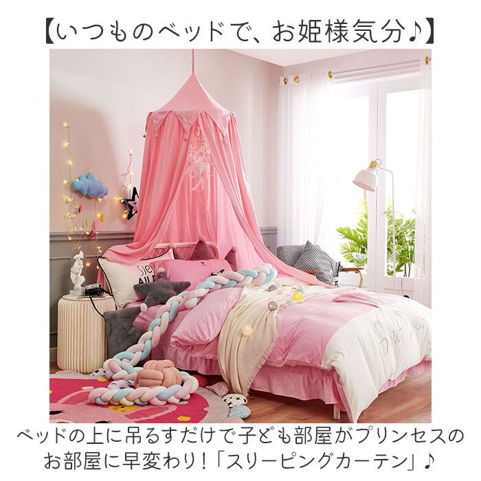 ・ベッドの上に吊るすだけで子ども部屋がプリンセスのお部屋に早変わり!「スリーピングカーテン」♪