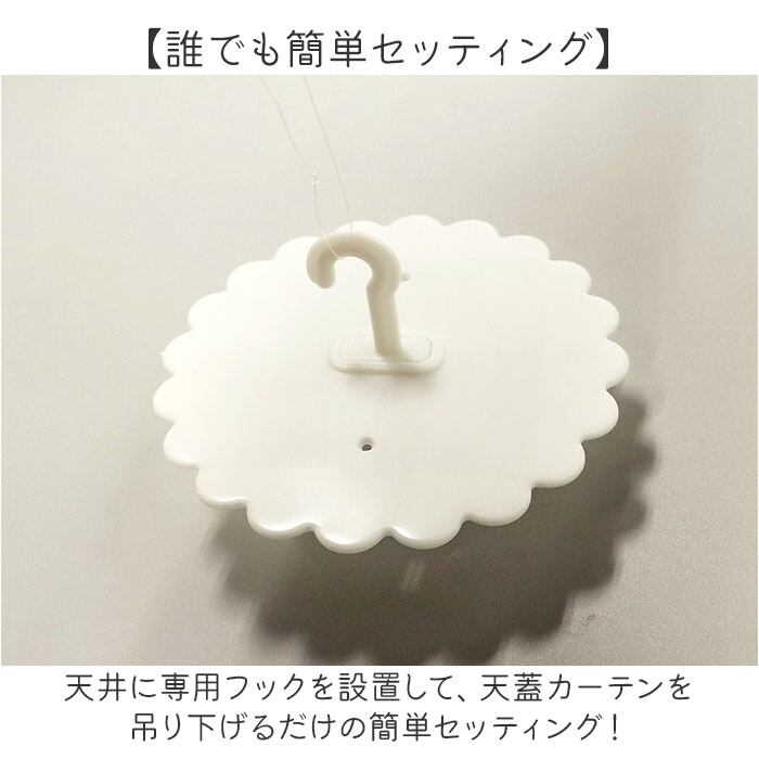 ・天井に専用フックを設置して、天蓋カーテンを吊り下げるだけの簡単セッティング!