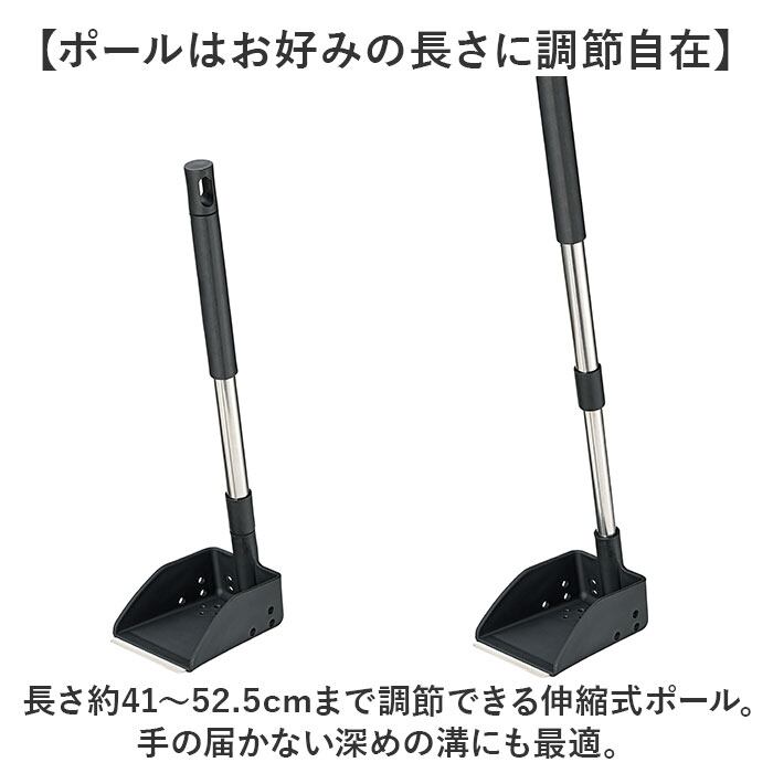 ・長さ約41〜52.5cmまで調節できる伸縮式ポール。手の届かない深めの溝にも最適。