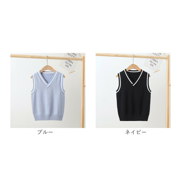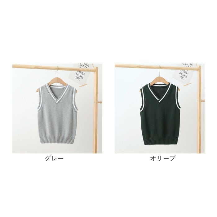 キッズ ニット ベスト vネック スクール