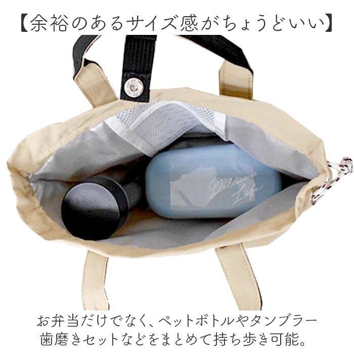・お弁当だけでなく、ペットボトルやタンブラー歯磨きセットなどをまとめて持ち歩き可能。