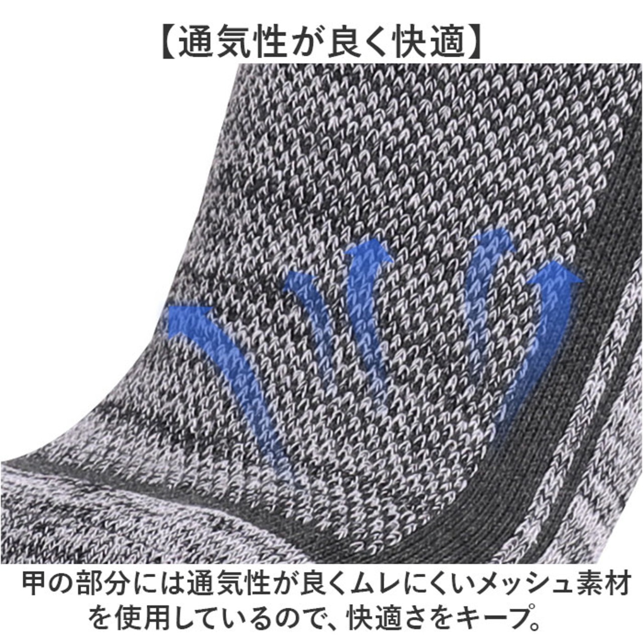 ・甲の部分には通気性が良くムレにくいメッシュ素材を使用しているので、快適さをキープ。