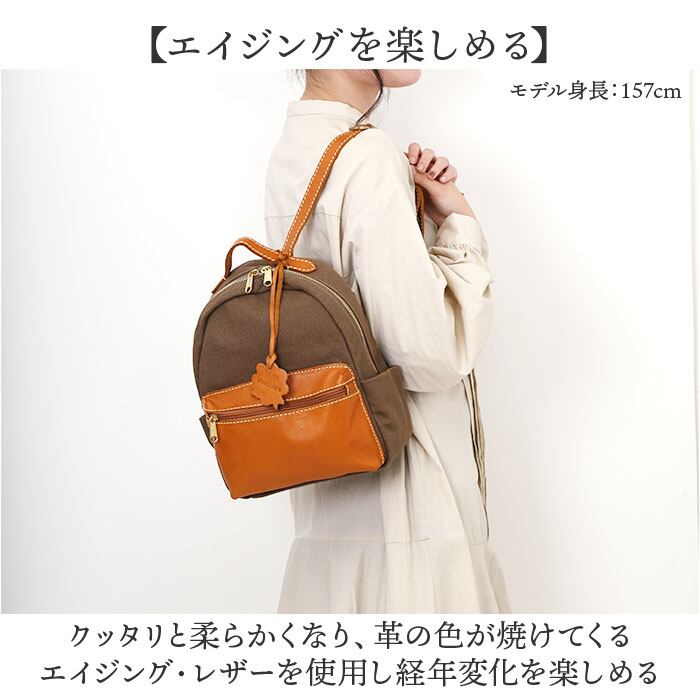 ・厚みのあるキャンバス地と本革との異素材コンビが可愛いデザイン♪