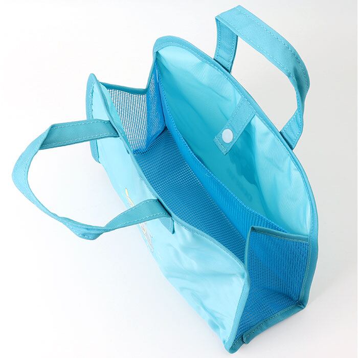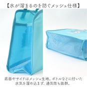 ・底面やサイドはメッシュ生地。ボトルなどに付いた水気を溜め込まず、通気性も抜群。