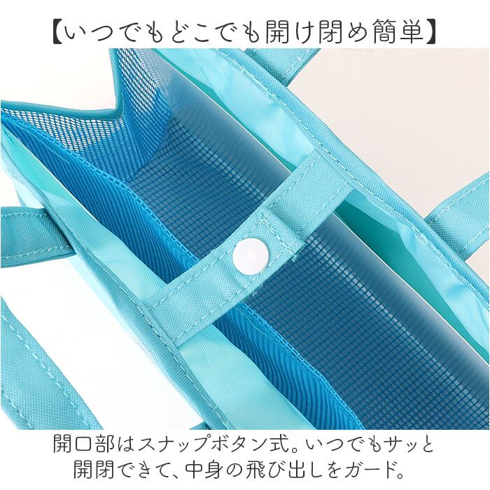 ・開口部はスナップボタン式。いつでもサッと開閉できて、中身の飛び出しをガード。