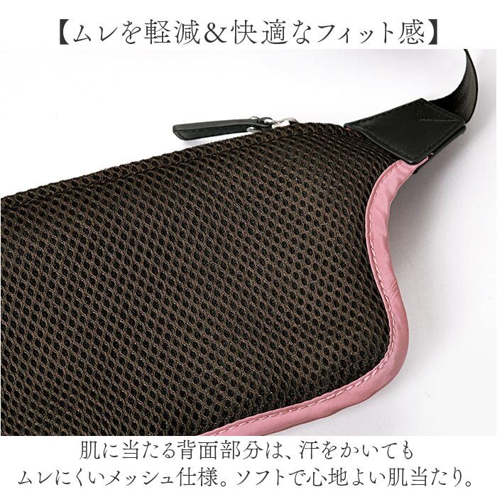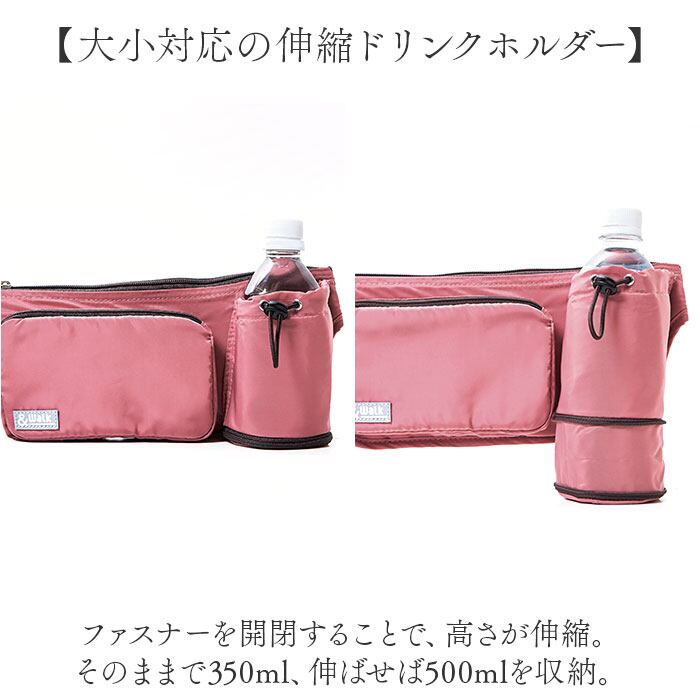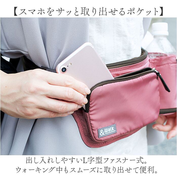 ・出し入れしやすいL字型ファスナー式。ウォーキング中もスムーズに取り出せて便利。