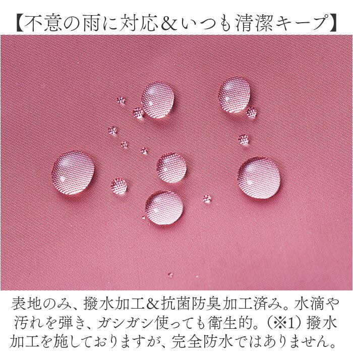 ・表地のみ、撥水加工&抗菌防臭加工済み。水滴や汚れを弾き、ガシガシ使っても衛生的。
