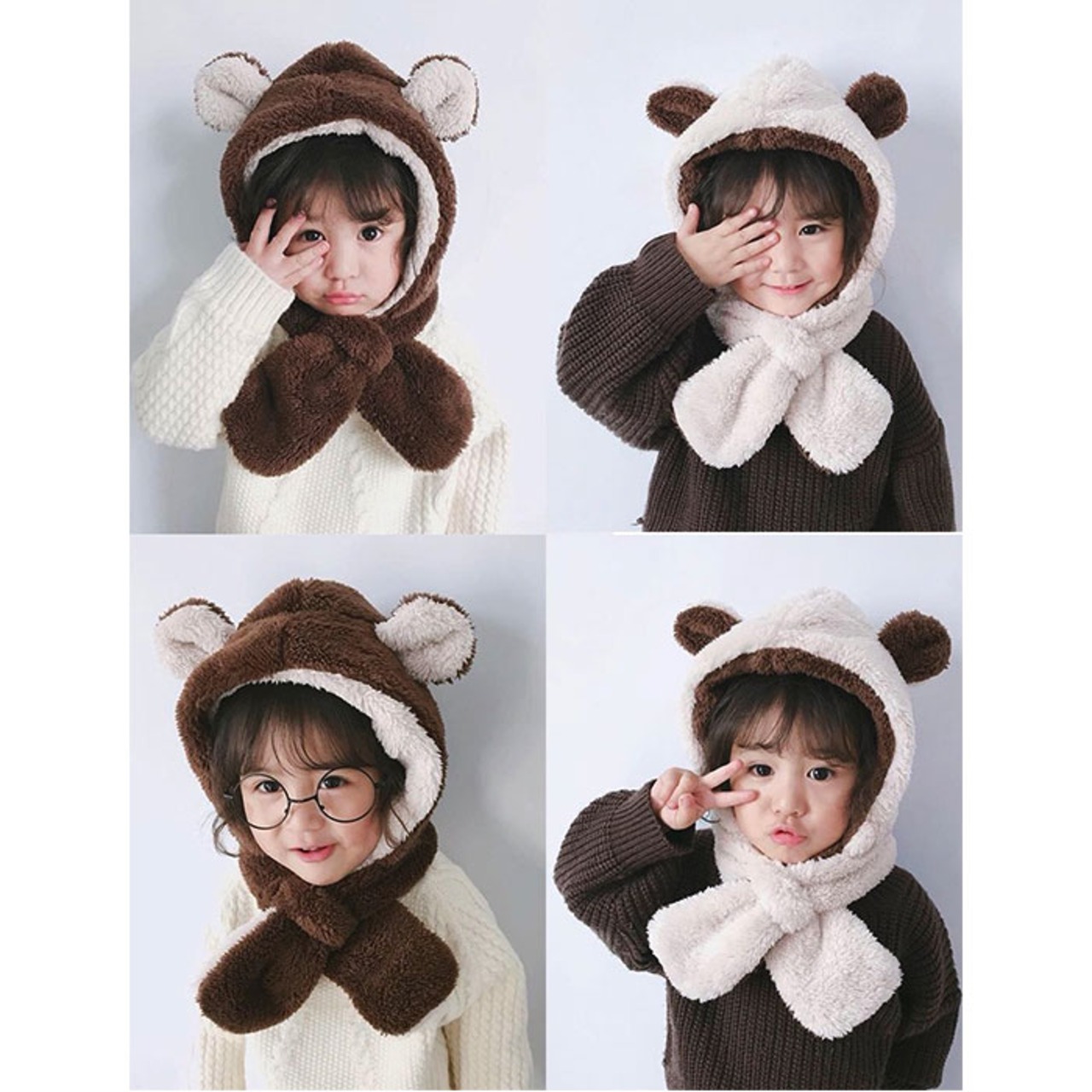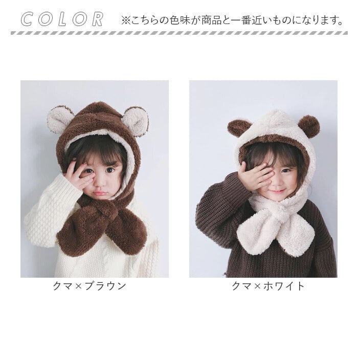 ・可愛い動物たちの耳付き♪キュートな「ふわふわ キッズマフラー 耳付き帽子」が登場。