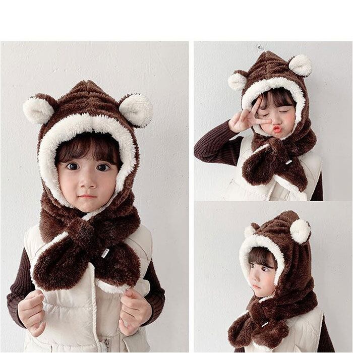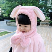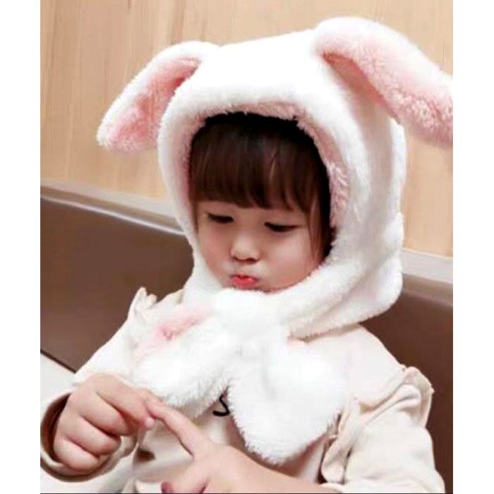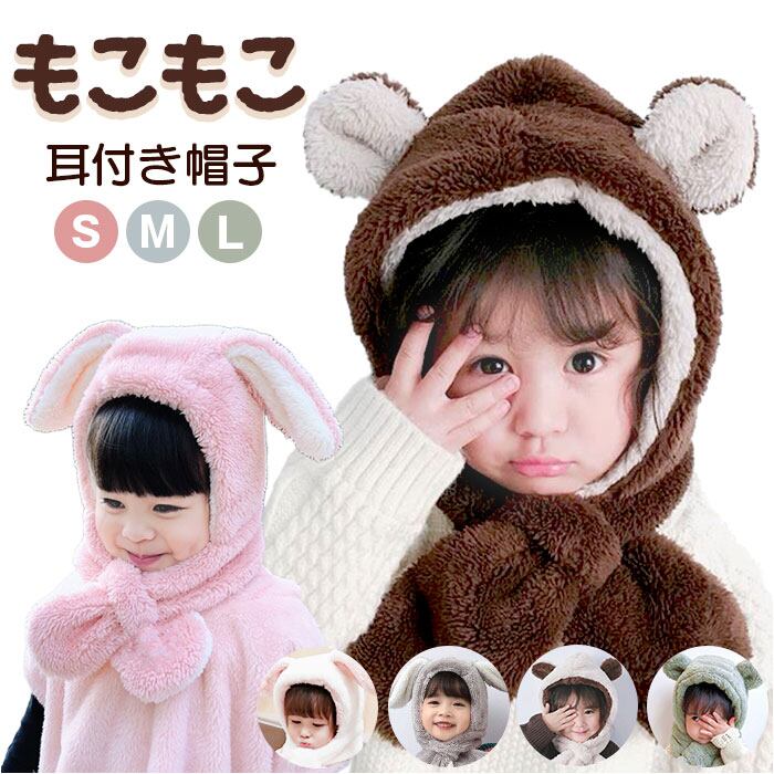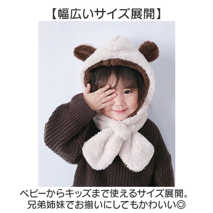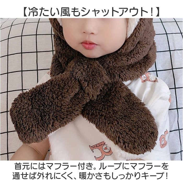 ふわふわ キッズマフラー 耳付き帽子