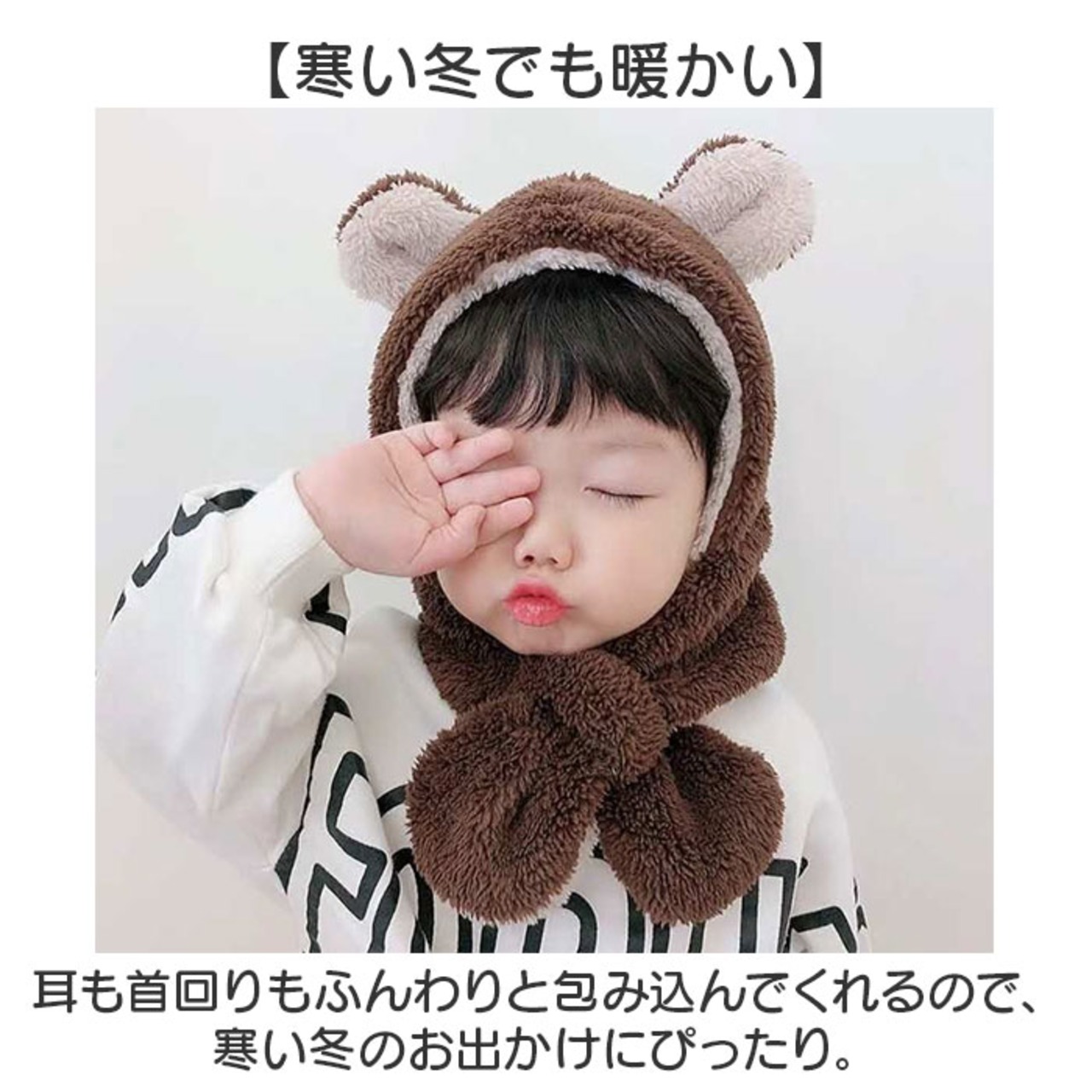 ・耳も首回りもふんわりと包み込んでくれるので、寒い冬のお出かけにぴったり。