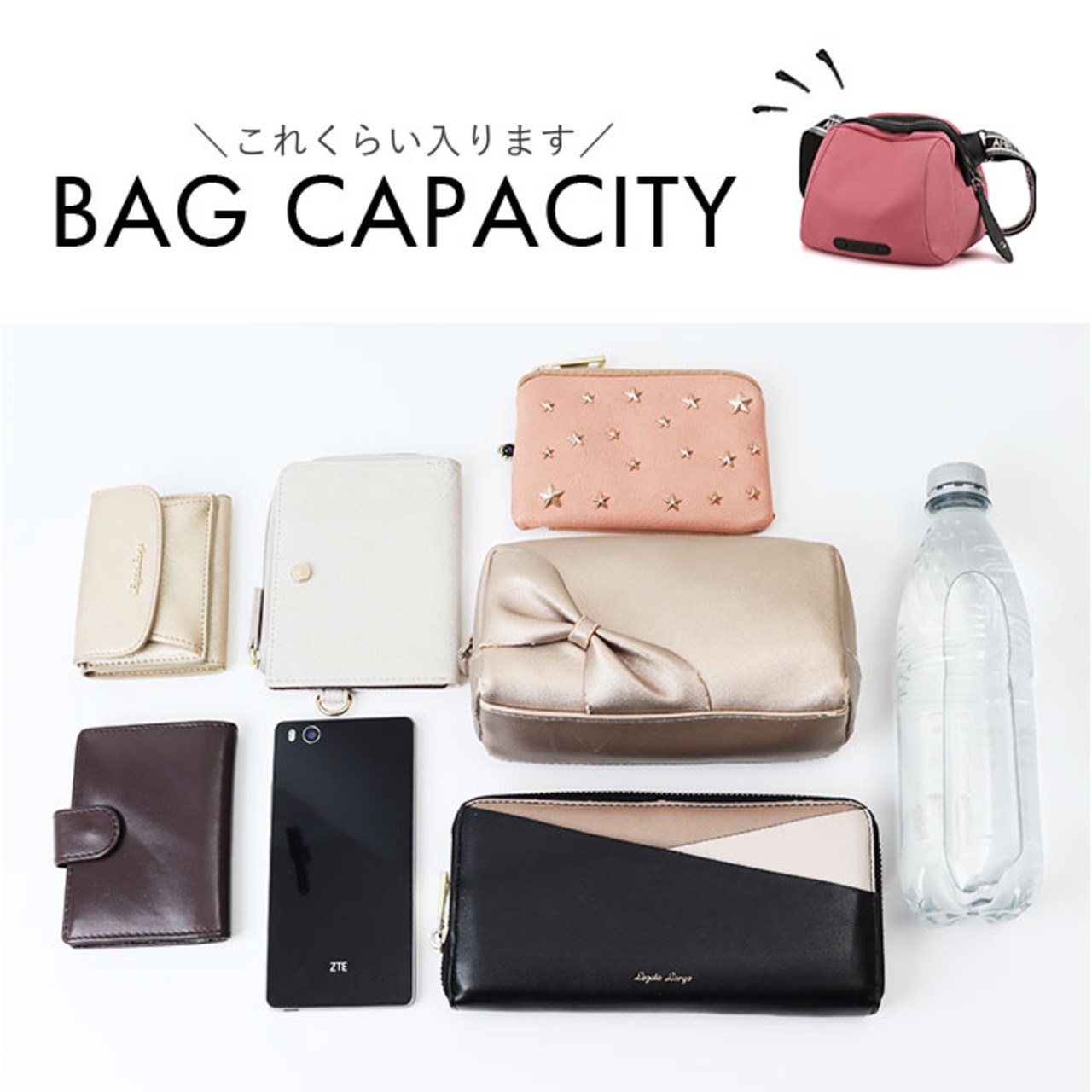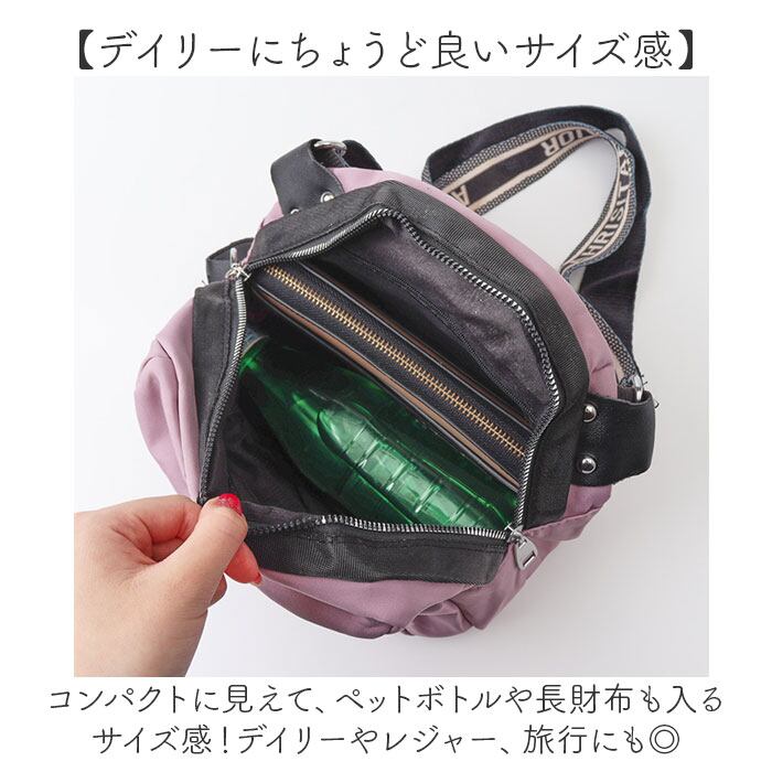・コンパクトに見えて、ペットボトルや長財布も入るサイズ感!デイリーやレジャー、旅行にも◎