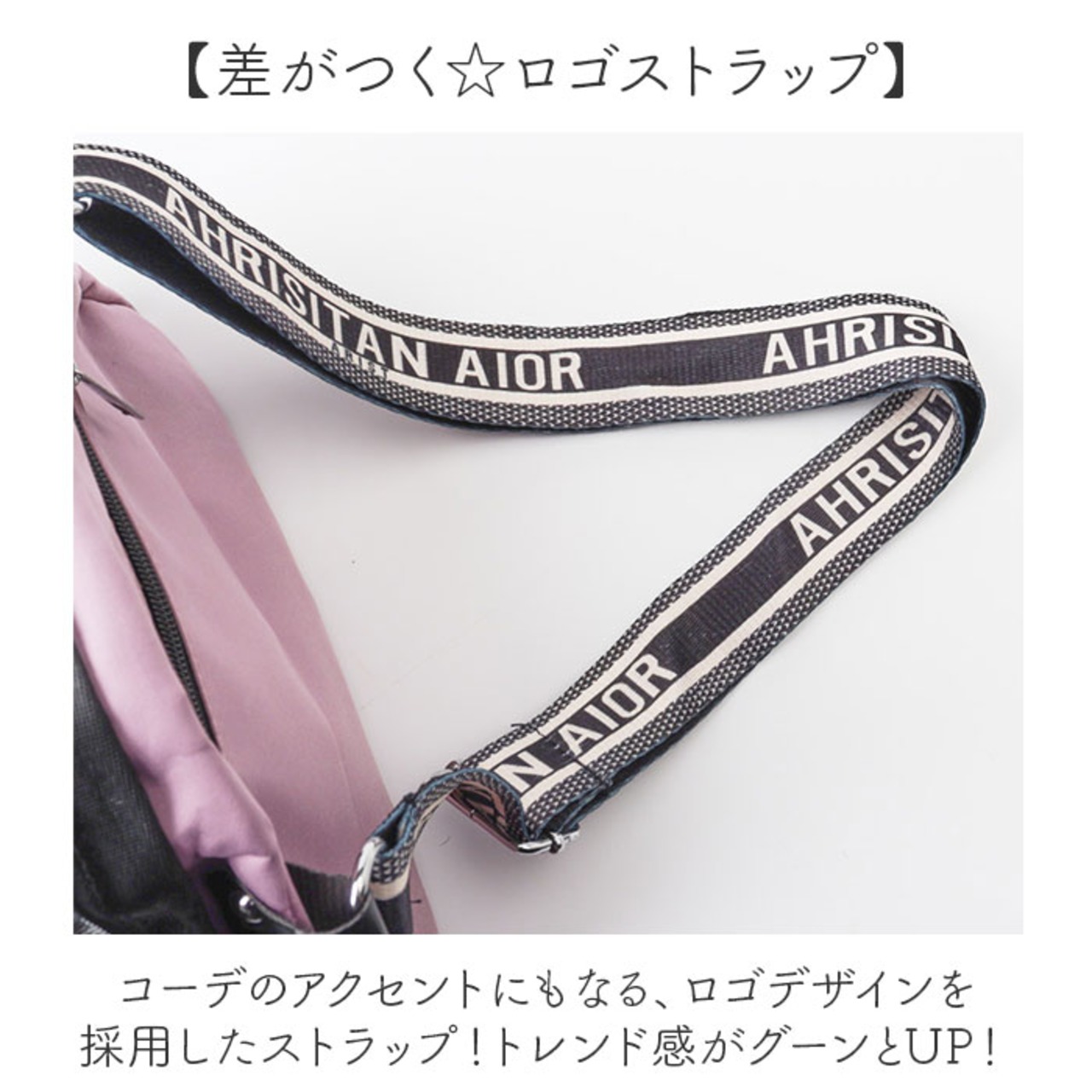 ・コーデのアクセントにもなる、ロゴデザインを採用したストラップ!トレンド感がグーンとUP!