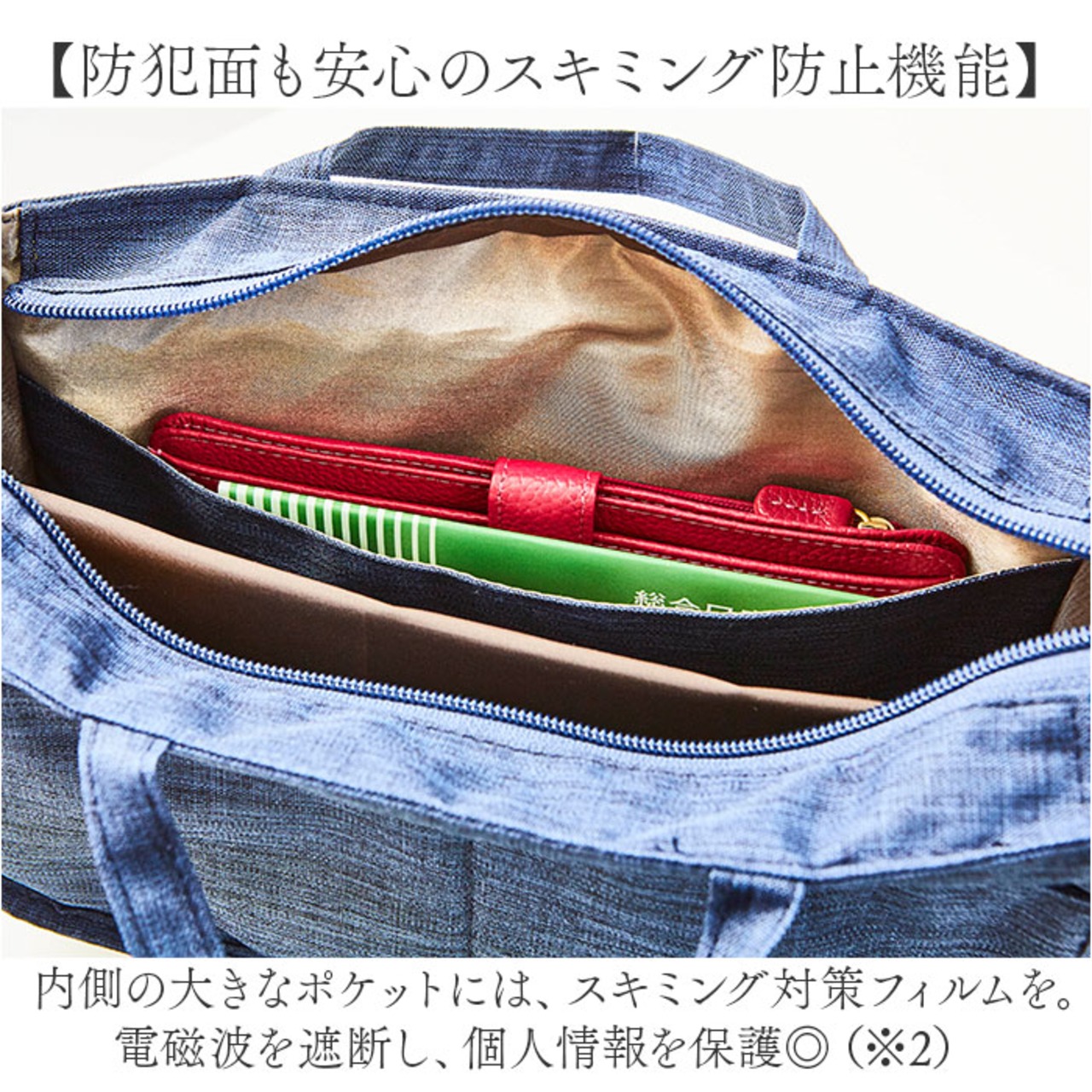 ・11ポケット&スキミング対策フィルム内蔵◎「バッグにもなるスキミング対策バッグイン」。