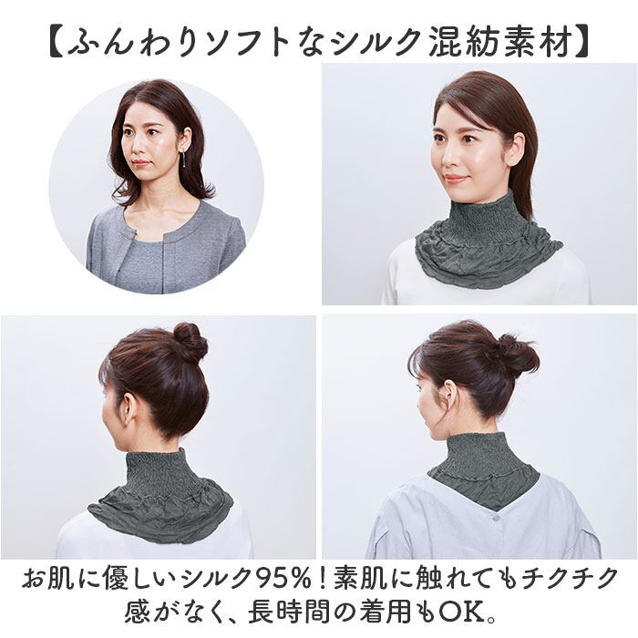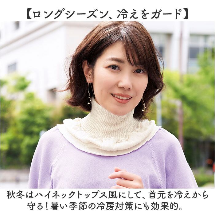 ・秋冬はハイネックトップス風にして、首元を冷えから守る!暑い季節の冷房対策にも効果的。