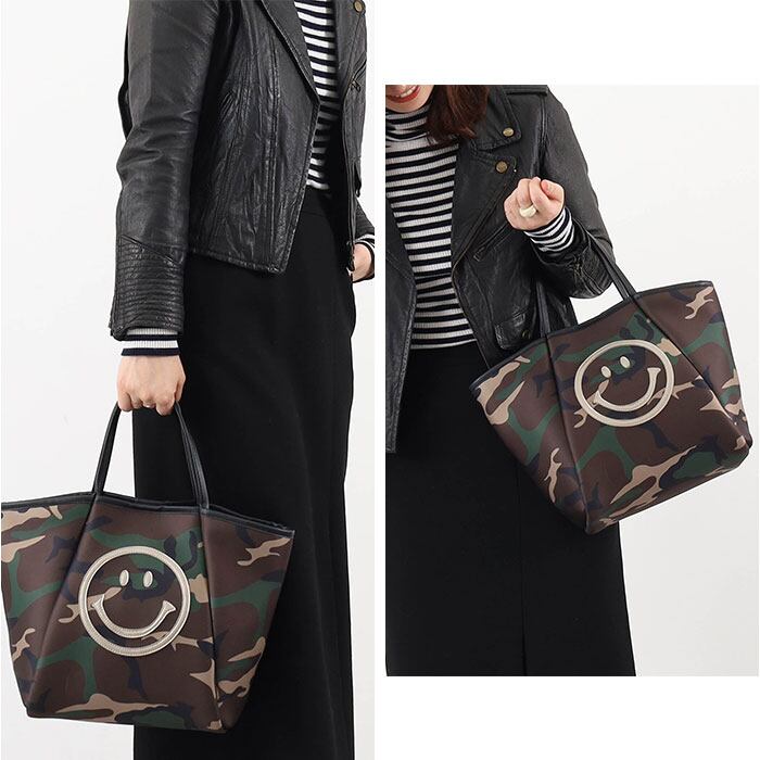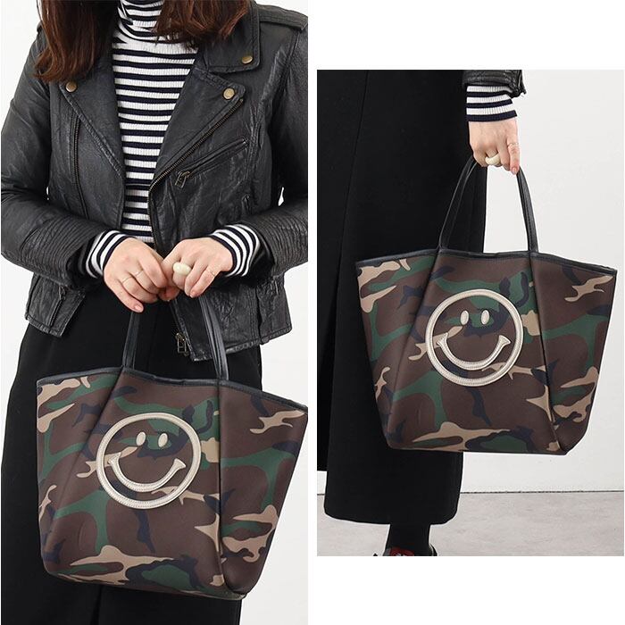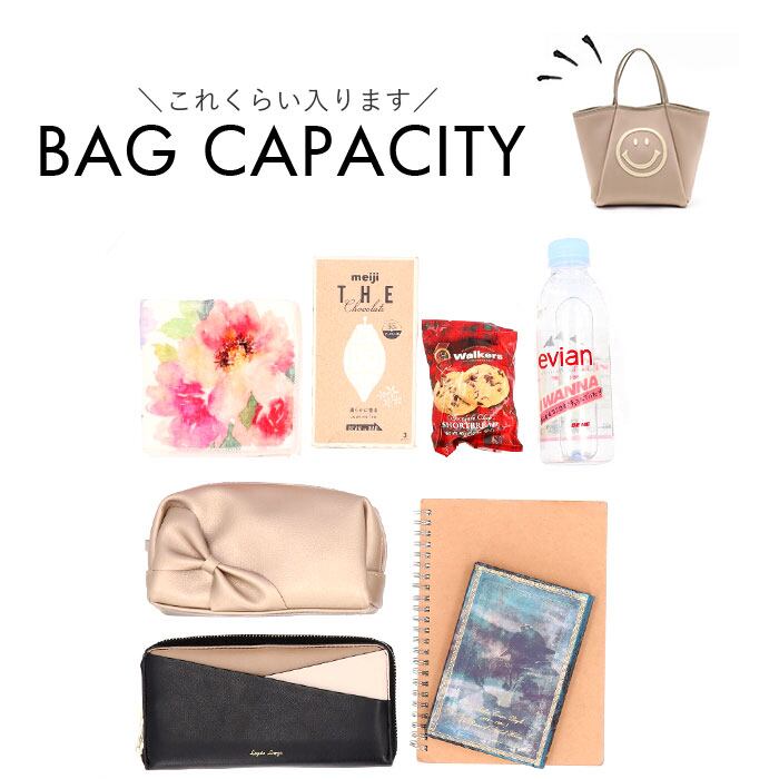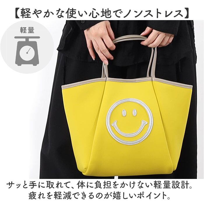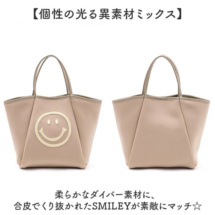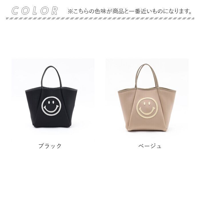 ・フロントに配置された、にっこりSMILEYマークがポイント。ポップな印象のトート♪