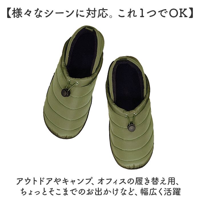 ・アウトドアやキャンプ、オフィスの履き替え用、ちょっとそこまでのお出かけなど、幅広く活躍