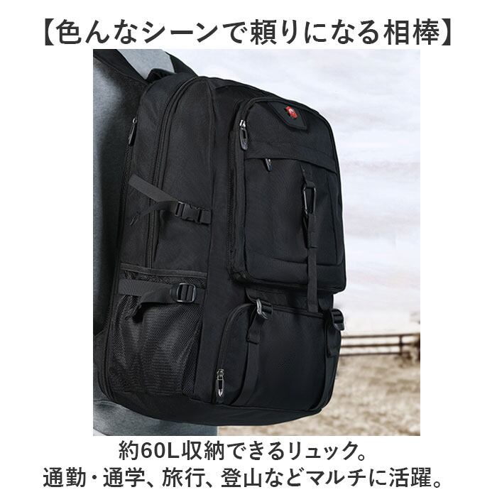 ・約60L収納できるリュック。通勤・通学、旅行、登山などマルチに活躍。