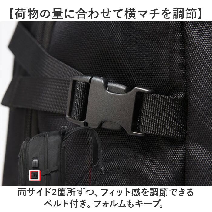 【荷物の量に合わせて横マチを調節】