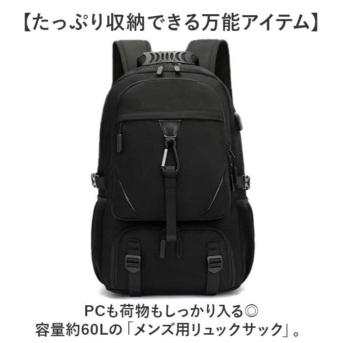 ・PCも荷物もしっかり入る◎容量約60Lの「メンズ用リュックサック」。