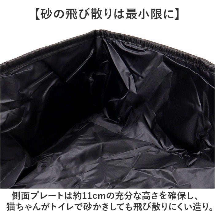 ・側面プレートは約11cmの充分な高さを確保し、猫ちゃんがトイレで砂かきしても飛び散りにくい造り。