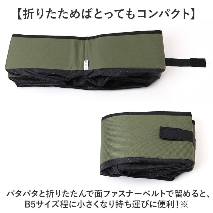 ・パタパタと折りたたんで面ファスナーベルトで留めると、B5サイズ程に小さくなり持ち運びに便利!