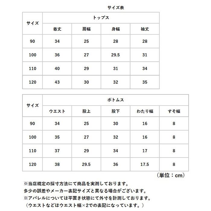 (※)90cm、100cmサイズは、トップスの首元片側にスナップボタン付きです。