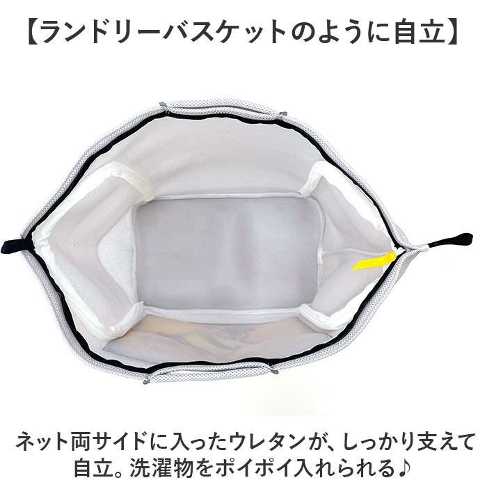 ・ネット両サイドに入ったウレタンが、しっかり支えて自立。洗濯物をポイポイ入れられる♪