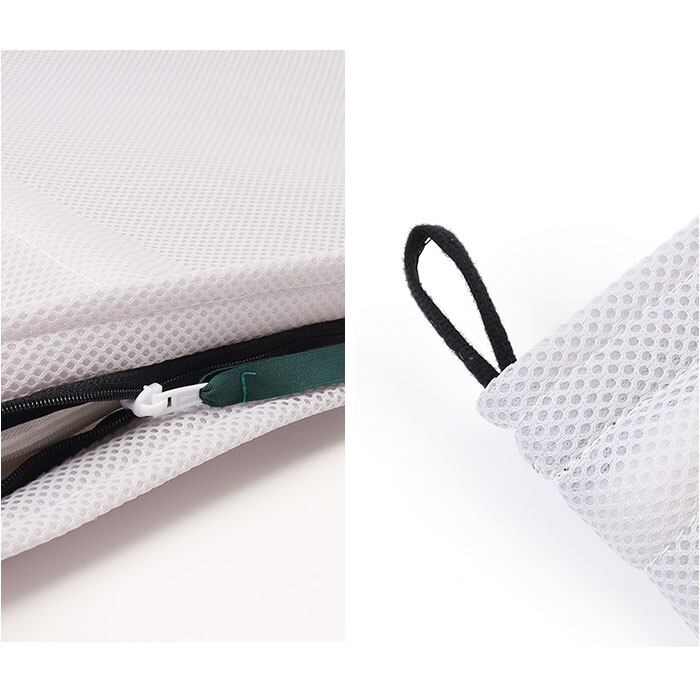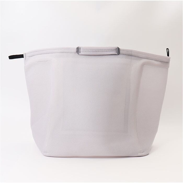・バスケットのファスナーを閉めれば洗濯ネットに。衣類を優しく洗い上げるダブルメッシュ素材。